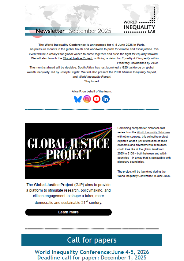 Les travaux sont dirigés par Lucas Chancel et son équipe. Le Rapport sur les Inégalités Climatiques de 2023 offre la synthèse la plus récente de ces travaux.